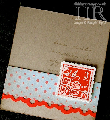 This is my personal blog and my sole responsibility as an Independent Stampin' Up!® demonstrator. All images are © Stampin' Up!® All content including photographs, projects and text are © Helen Read, unless otherwise stated. Please feel free to copy my ideas for your personal use and inspiration - if you are a SU demonstrator you may use these ideas for your events but please give credit where it is due. Please do not use my ideas for monetary gain, competitions or publication. The images on this blog - including blog buttons - should not be copied and used elsewhere on the internet or on CDs.