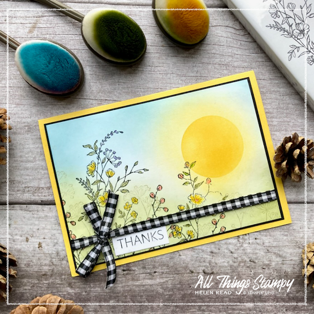 On both cards I added some seed heads in Crumb Cake stamped off (on scrap paper first to create a paler image) to add depth to the image.