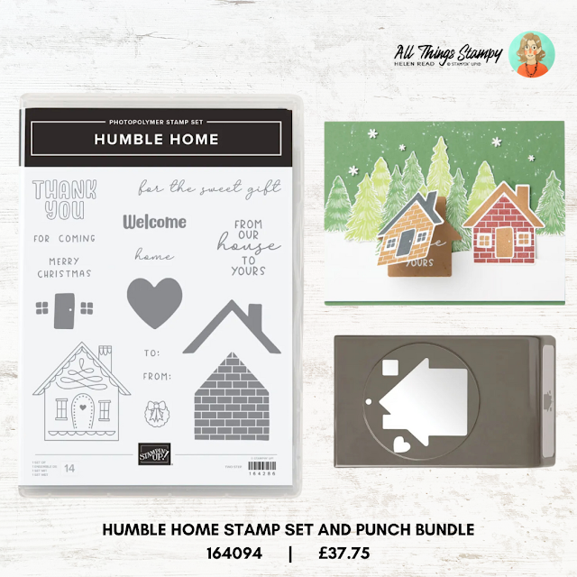 Naturally, after wanting a set like this for so long and putting the Humble Home bundle (164094) at the top of my wish list, I forgot to order it. But I have it now and have have used Humble Home stamp set and matching punch to create three cards. They’re all linked by a simple white card base but they are all very different.